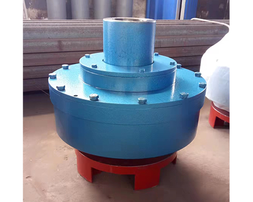 離心摩擦偶合器該產(chǎn)品結(jié)構(gòu)采用離心摩擦式,改變了液力耦合器利用介質(zhì)傳遞力矩的原理,避免了使用液力耦合器容易出現(xiàn)的跑、冒、滴、漏、噴液傷人,及大量維護工作等。耦合器主要由傳動輪、機芯、離心塊、阻燃抗靜電摩擦塊、防塵蓋、靠背輪、限位銷、花鍵套等組成。內(nèi)部結(jié)構(gòu)采用將三個離心摩擦塊安裝在均稱分布在機芯上的矩形槽內(nèi),每組離心摩擦塊均有一拉力彈簧控制,且每組離心塊滑槽內(nèi)安裝一限位銷。其特點是保證了離心摩擦塊受力的勻稱性,拉簧確保了離心摩擦塊工作的一致性、平穩(wěn)性及離合器的靈活性。限位銷有效地限制了摩擦塊的摩損量,避免了金屬摩擦的危險性,額定力矩控制在電動機過載保護系數(shù)內(nèi),使機械不發(fā)生悶車,電機不被燒壞。